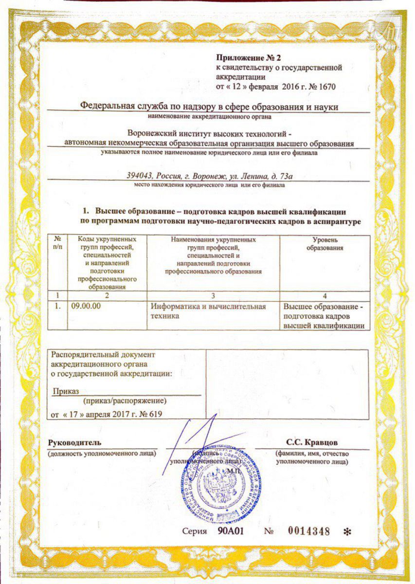 В Воронежском институте высоких технологий проведена аккредитационная экспертиза по основной образовательной программе подготовки научно-педагогических кадров в аспирантуре.