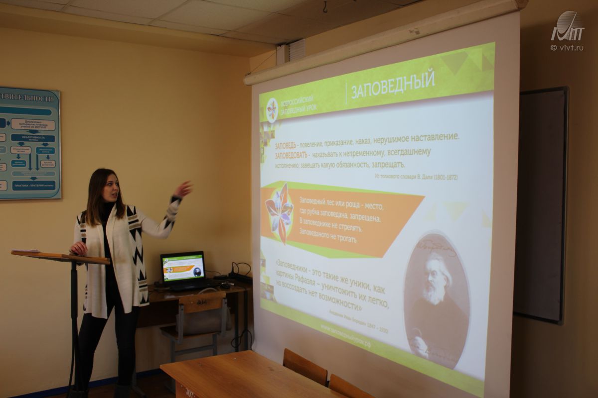 8 февраля для студентов ВИВТ прошел урок-презентация «Заповедные места». Цель мероприятия: экологическое просвещение и популяризация знаний об особо охраняемых природных территориях Воронежской области, включая объекты федерального и регионального значения.